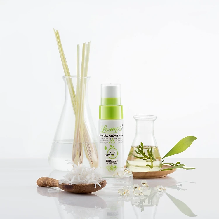 Dầu chống muỗi cho bé Lomos được chiết xuất hoàn toàn từ thiên nhiên. Citral trong tinh dầu sả chanh và Citronellol, Limonene trong tinh dầu tràm có khả năng chống muỗi và các loại côn trùng. Vitamin E có tác dụng kháng oxy hóa, ngăn cản quá trình lão hóa da. Tinh dầu dừa hoạt hóa được chiết xuất theo công nghệ thủy phân bằng enzyme tự nhiên không nhờn rít, dễ dàng thấm sâu vào da, không làm bít lỗ chân lông.Ngoài ra, tinh dầu dừa có tác dụng ngăn chặn 95% tia cực tím (UV), dưỡng ẩm, chống oxy hóa ngăn cản quá trình lão hóa và nuôi dưỡng tế bào da khỏe mạnh.