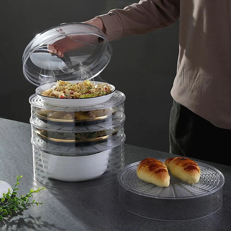 Lồng bàn Nhà của Mẹ giữ nhiệt, chống bụi, côn trùng 4 tầng, 5 ngăn (thiết kế lỗ hở giữa các ngăn) chất liệu nhựa PP trong suốt cao cấp