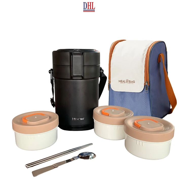 Lồng cơm giữ nhiệt, hộp cơm văn phòng Mitomo LCH-7086, cặp lồng chia 3 ngăn chất liệu inox 304 hàng chính hãng
