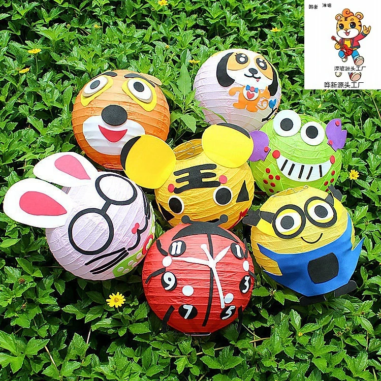 Lồng đèn tròn Trung Thu hoạt hình ngộ nghĩnh tự trang trí - Giáo cụ mầm non tổ chức vui chơi trung thu