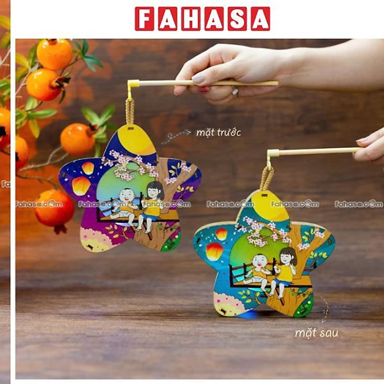 Lồng Đèn Trung Thu Gỗ 2 Mặt Màu - Bách Mộc - Chị Em