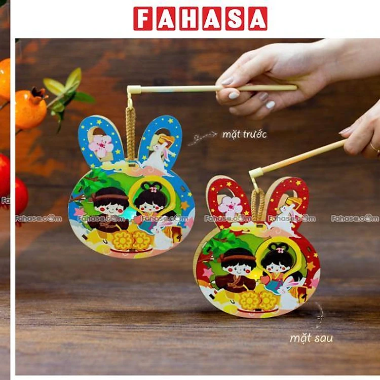 Lồng Đèn Trung Thu Gỗ 2 Mặt Màu - Bách Mộc - Thỏ Bánh