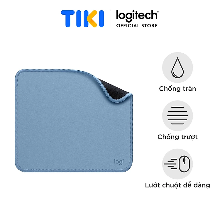 Lót chuột Logitech Mouse Pad - Đế cao su chống trượt, lướt dễ dàng, bề mặt chống đổ tràn, bền bỉ, nhỏ gọn - Hàng chính hãng