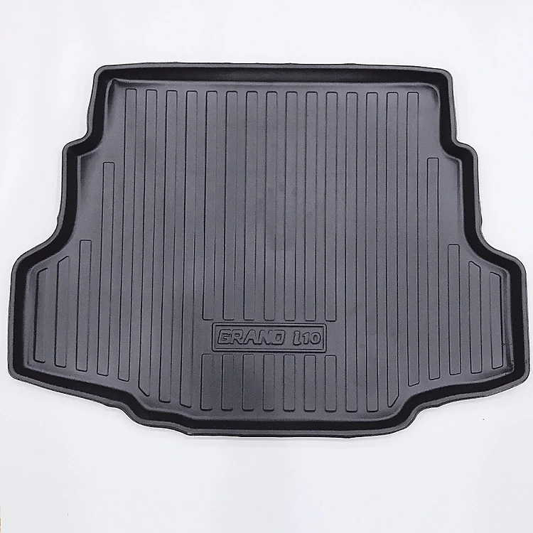 Lót cốp dành cho Hyundai i10 cao cấp bản Sedan cao cấp. Vật liệu TPO (Thermoplastic Elastomers – nhựa nhiệt dẻo đàn hồi). Đó là một loại vật liệu cao cấp chống thấm nước, không mùi, có độ bền – độ đàn hồi cao. Được áp dụng vào nhiều lĩnh vực y tế, thể thao, nhựa trên taplo ô tô… Sản phẩm được đúc nguyên khối. Được định hình 3D theo đúng biên dạng với cốp xe và model xe riêng biệt. Thành cốp có độ cao 5 -10 cm (tùy từng dòng xe). Điều này giúp cho việc giữ nước cũng như các đồ vật ẩm thấm nước) và các vật bẩn khác không rơi ra cốp xe. Việc này sẽ bảo vệ nỉ cốp xe một cách an toàn và tốt nhất, mang lại cho không gian cốp xe của bạn luôn được sạch sẽ và sang trọng.