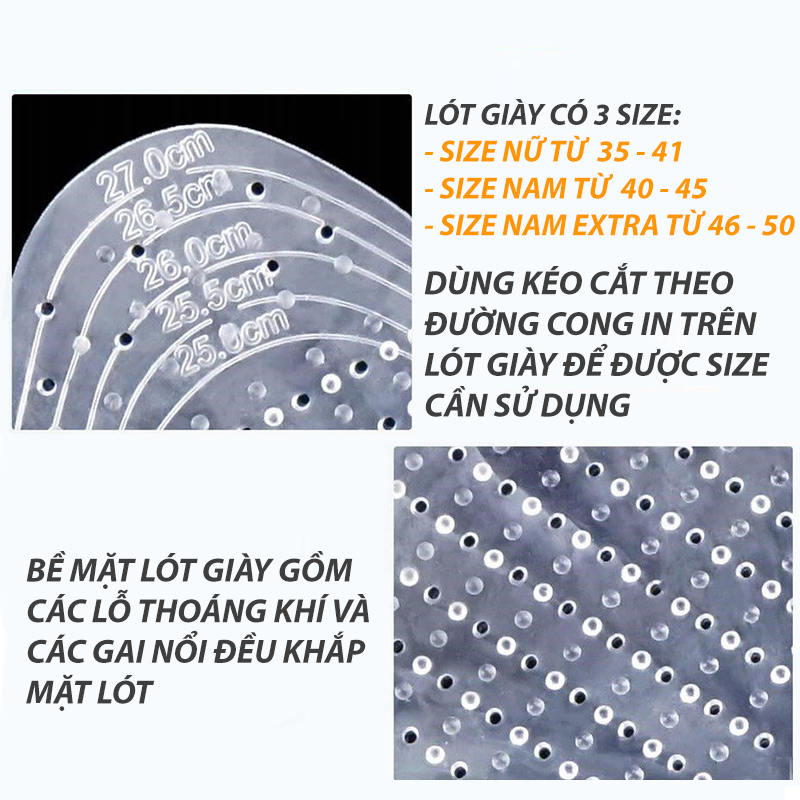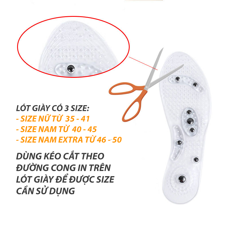 - Dùng kéo để cắt theo đường cong in trên lót giày để có được size cần sử dụng. (xem hình trong nội dung để biết cách sử dụng)