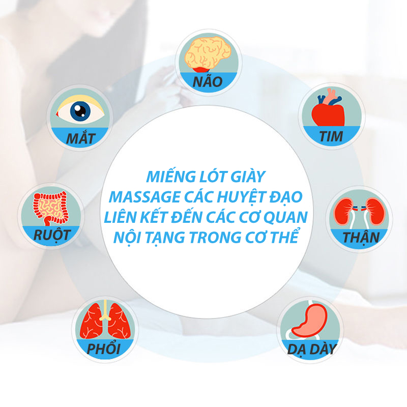 - Công dụng: Theo y học cổ truyền từ xa xưa rất xem trọng bàn chân, nguyên nhân vì đây là bộ phận gánh chịu toàn bộ trọng lượng cơ thể và có rất nhiều huyệt đạo liên kết đến các cơ quan nội tạng. Người xưa vẫn thường xoa nắn và ngâm chân trong nước ấm pha muối loãng mỗi buổi tối để thải độc cơ thể. Với miếng lót massage chân silicon này, bạn vẫn có thể massage bàn chân, đã thông các huyệt đạo trong suốt ngày dài làm việc giúp cơ thể được thư giãn.