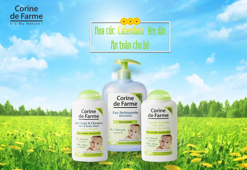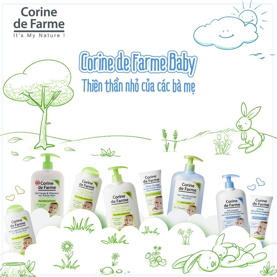 Lotion làm sạch và dưỡng ẩm da cho bé Corine de Farme với công thức dịu nhẹ, dồi dào dưỡng chất từ Hoa Cúc được biết đến với tính chất dưỡng da êm dịu và mềm mại kết hợp cùng thành phẩn dưỡng ẩm tự nhiên Glycerin.