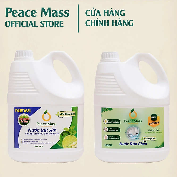Combo Sản Phẩm Gốc Thực Vật LSB3 Peace Mass Nước Lau Sàn TD Chanh Sả - Bạc Hà 3.6 l + Nước Rửa Chén 3.6 l (Thuộc nhóm Sản phẩm Lành tính / Sinh học)