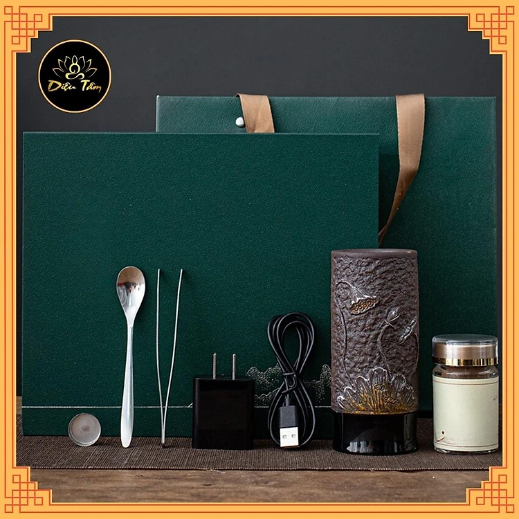 Lư điện lư xông trầm điện gốm lư đốt trầm hương trầm nụ làm quà tặng, đồ thờ cúng phong thủy shop Diệu Tâm- lư tích điện nâu