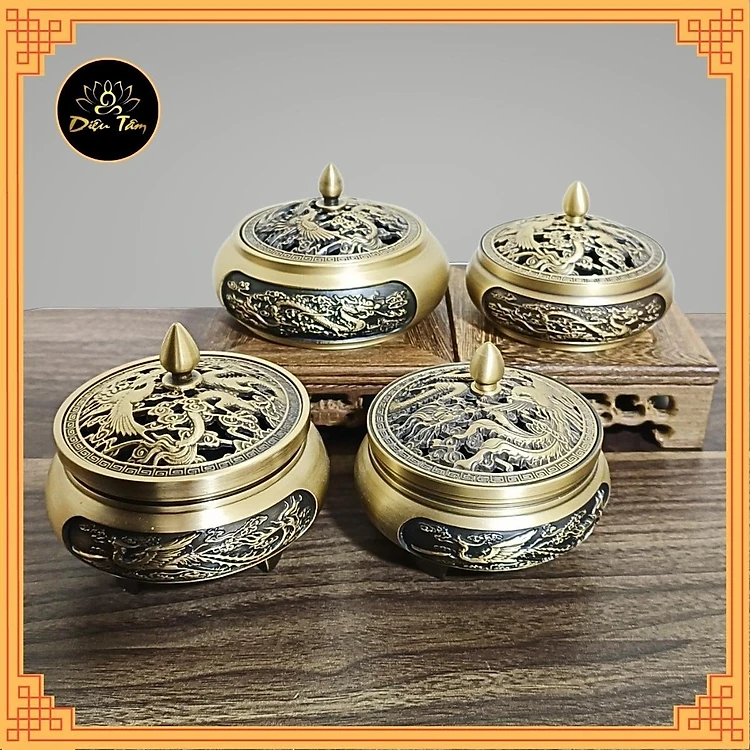 Lư đồng lư xông trầm hương trầm nụ cao cấp thiết kế tinh xảo tặng kèm trụ và lót chống cháy shop Diệu Tâm