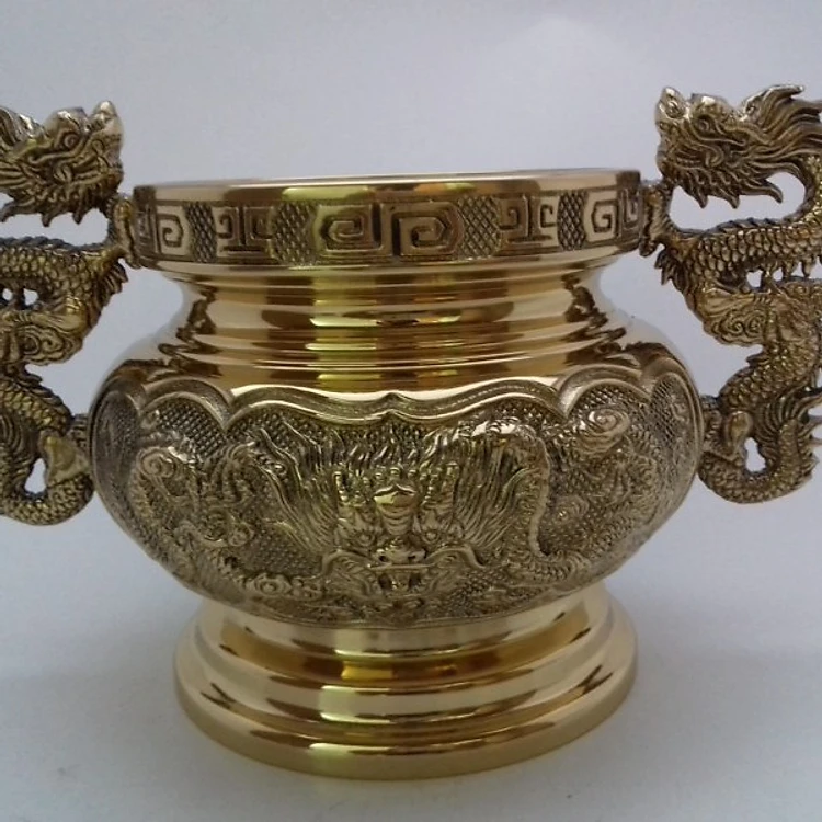 Trong văn hóa phương Đông, rồng là một linh vật biểu hiện cho sự trù phú, sung túc, là ấn sắc dành riêng cho vua chúa thời xưa, từ ngọc sải, long ỷ, hay bất cứ tác phẩm điêu khắc nào trong cung đình đều mang dáng dấp của rồng. Hai tay cầm chính là hai con rồng uy nghiêm, bệ vệ, và họa tiết ngay giữa lư chính là hình ảnh song long chầu nguyệt ( hai con rồng đang tranh châu ), được gia công bởi những người thợ lành nghề nhất, nhằm mang đến sự hài lòng tối đa cho quý khách hàng.
