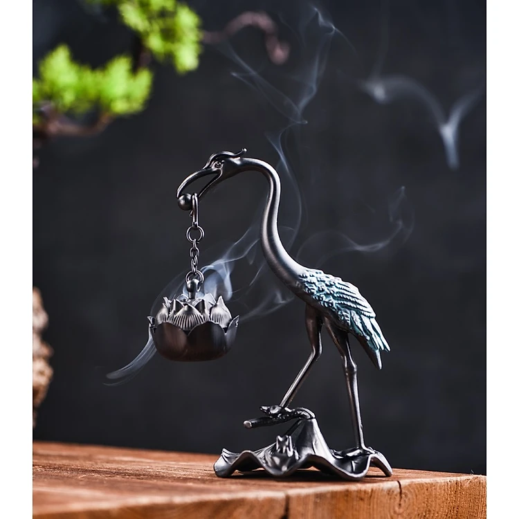Lư Hương Xông Trầm, Đốt Nhang Trầm Hạc Sen Bằng Hợp Kim Đồng (Cỡ Bé)