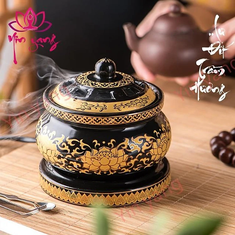 - Phụ kiện: 01 khay kim loại, 01 thìa để xúc bột trầm, 01 nhíp để mở nắp lò hoặc trở trầm miếng.