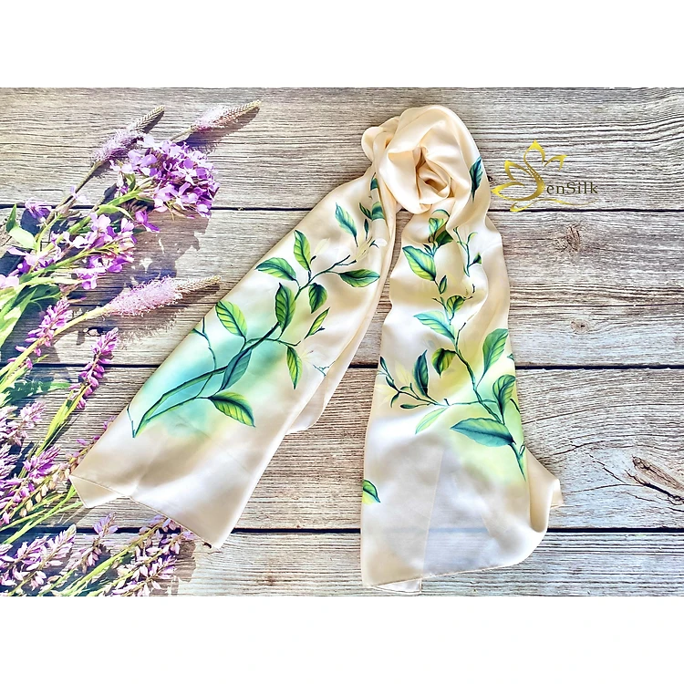 Lụa Tơ Tằm Bảo Lộc Vẽ Thủ Công Hoa Ngọc Lan SenSilk 180x55cm - Tuyệt phẩm từ Làng nghề Việt