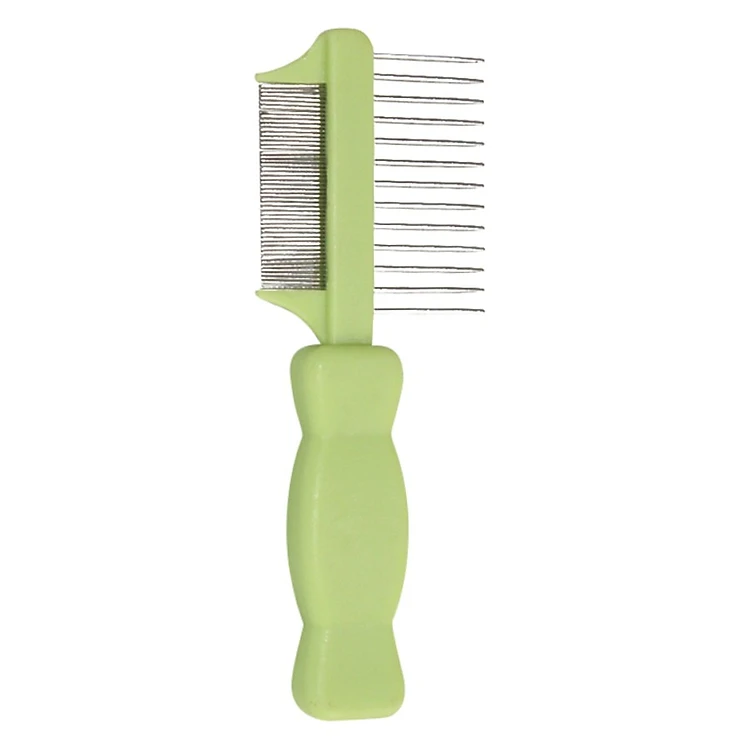 - Lược Chải Lông 2 Mặt Pet Grooming được làm từ chất liệu inox bền chắc với một mặt răng thưa, một mặt răng khít, thích hợp sử dụng với từng loại lông chó mèo.