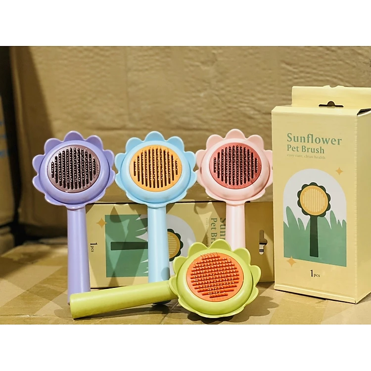 Lược chải lông gỡ rối cho chó mèo hình hoa dướng dương có nút bấm đẩy lông thừa