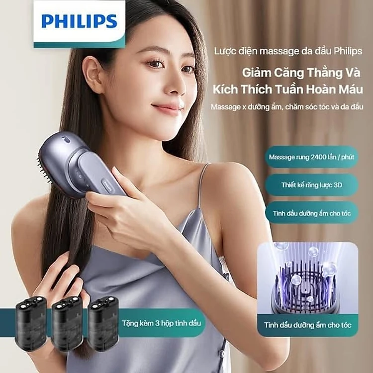 LƯỢC MASSAGE PHUN TINH DẦU PHILIPS 1511 Hàng chính hãng