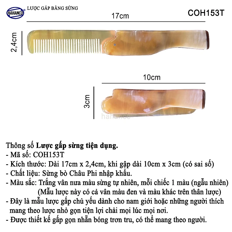 Lược Sừng Nhỏ Gọn Bỏ Túi Dùng Chải Tóc Chải Râu Thuận Tiện Cho Nam - COH153