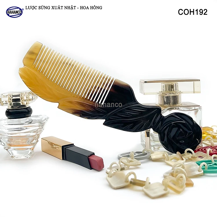 Lược Sừng Vân Nưa Hoạ Tiết Hoa Hồng (Size:XL-20cm) biểu tượng của tình yêu, làm quà tặng rất ý nghĩa, Mẫu Cao Cấp Siêu Đẹp - COH192