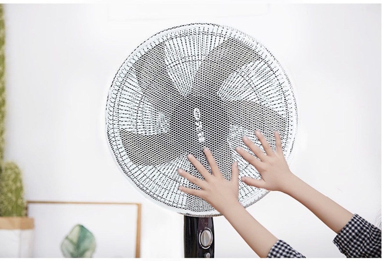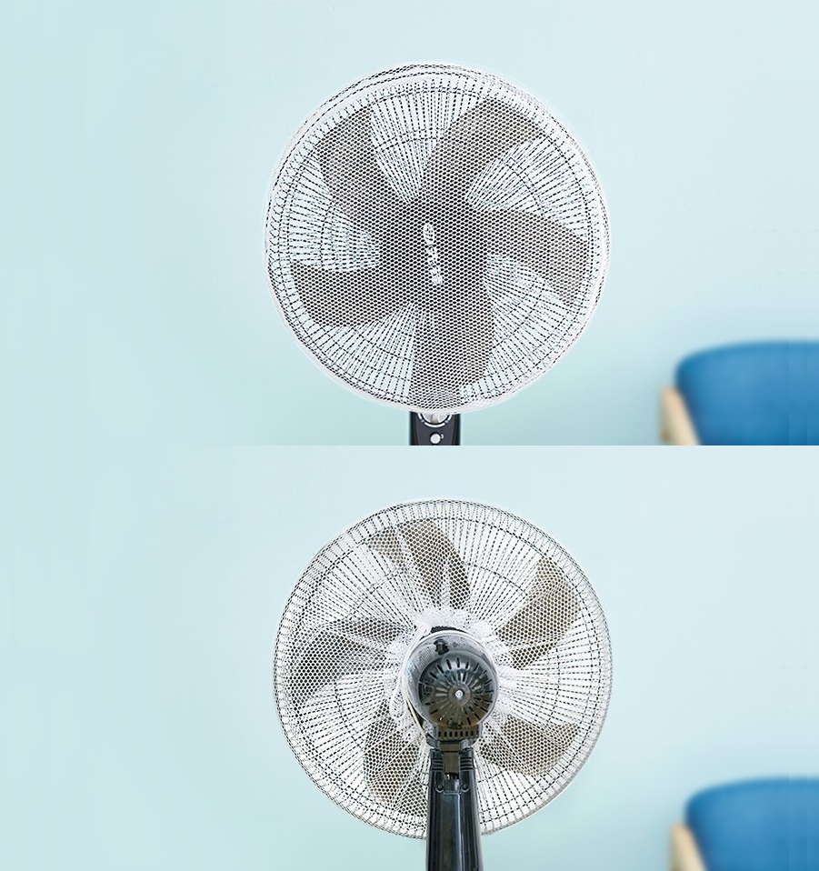 Chất liệu sợi polyester, có hiệu quả ngăn ngón tay bé xâm nhập vào quạt, bền và có thể giặt được.