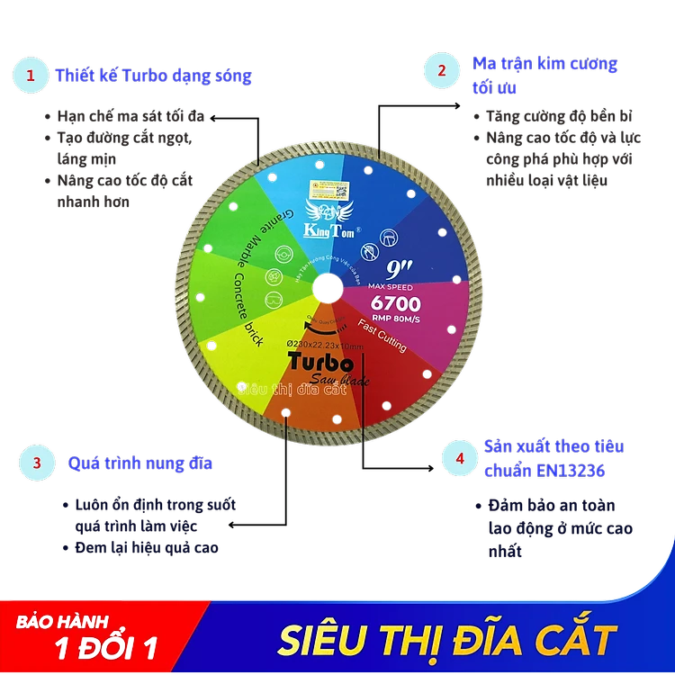 Lưỡi Cắt Đa Năng 230mm KingTom Sắc Màu - Chuyên Cắt Granite, Bê Tông