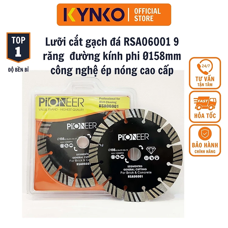 LƯỠI CẮT GẠCH - ĐÁ RSA06001 9 răng đường kính phi Ø 158mm công nghệ ép nóng cao cấp