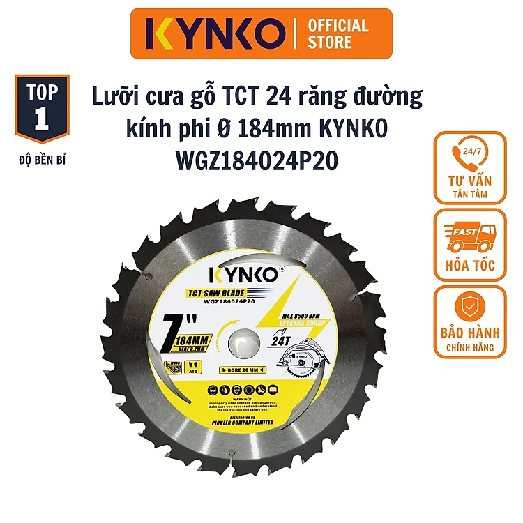 Lưỡi cưa gỗ TCT 24 răng đường kính phi Ø 184mm KYNKO WGZ184024P20_NEW24
