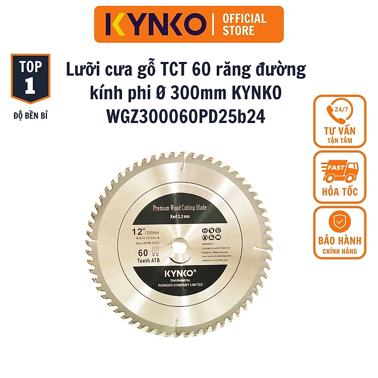 LƯỠI CƯA GỖ TCT 60 RĂNG đường kính phi Ø 300mm KYNKO WGZ300060PD25b24