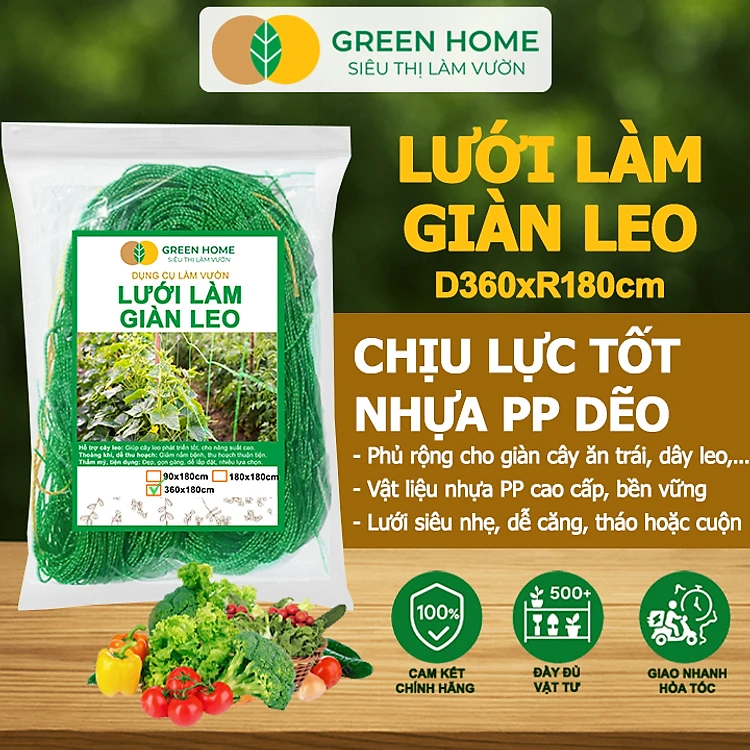 Lưới làm giàn cây leo, GreenHome, Nhiều kích thước Độ bền cao, Dễ lắp đặt, Không viền, Làm giàn bầu, Mướp, bầu, Bí, hoa