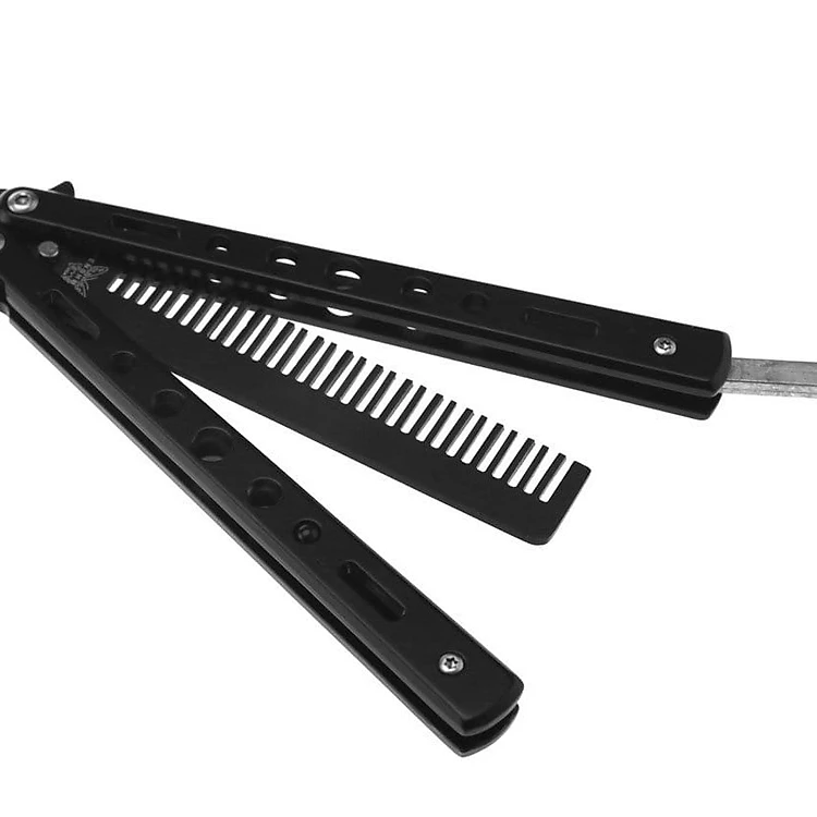 Sản phẩm Lưỡi Lược Thép Lược Bướm Tập Quay Tay dành cho người mới tập chơi Balisong (Butterfly Knife) với thiết kế thanh lược giả thay cho lưỡi dao nằm ở giữa rãnh của 2 cán.