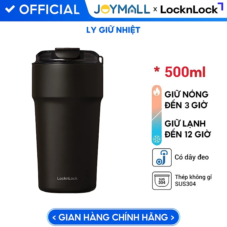 Ly giữ nhiệt 500ml LocknLock màu đen LHC4357BLK Metro Cafe Tumbler, Hàng chính hãng, Thép 304 không gỉ, có dây đeo tay - JoyMall