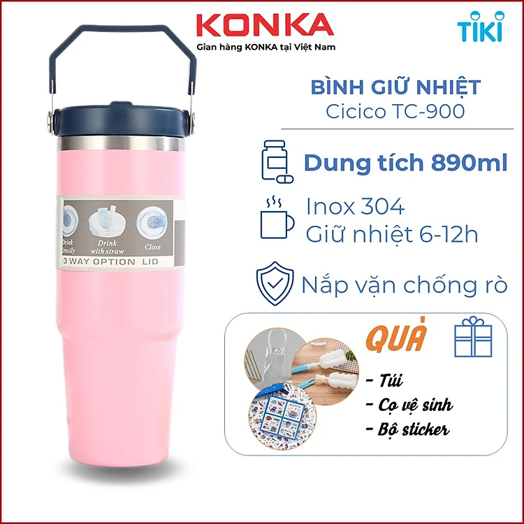 Ly giữ nhiệt 890ml inox 304, bình giữ nhiệt có ống hút tiện lợi, giữ nhiệt nóng lạnh 6-12 tiếng không đổ mồ hôi
