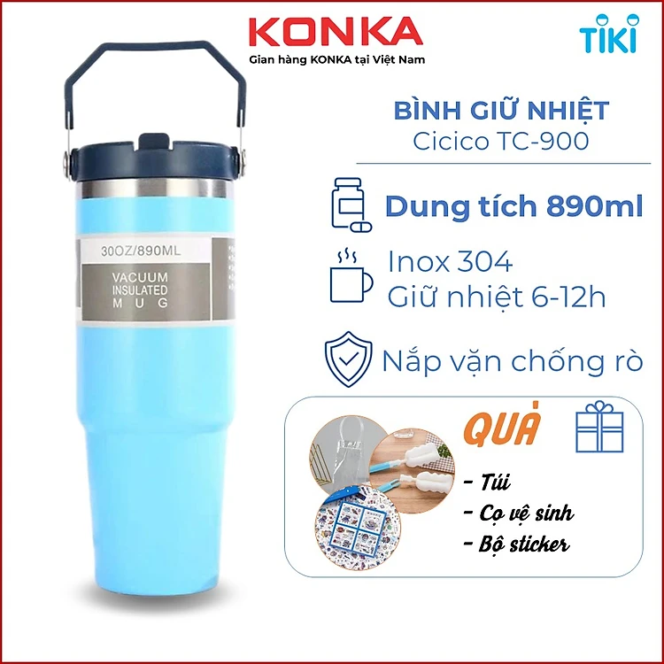 Ly giữ nhiệt 890ml inox 304, bình giữ nhiệt có ống hút tiện lợi, giữ nhiệt nóng lạnh 6-12 tiếng không đổ mồ hôi
