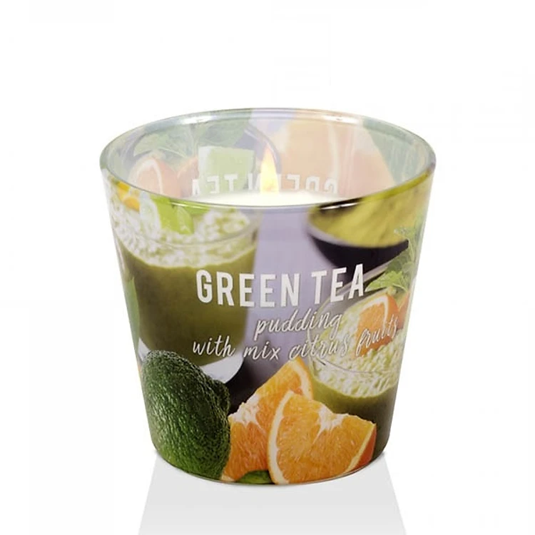 Ly nến thơm Bartek Candles BAT6427 Green Tea Pudding 115g (Hương trà xanh hoa quả)