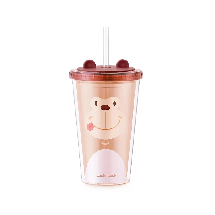 Ly nhựa 2 lớp 520ml Lock&Lock Double Wall HAP511 HAP512, Hàng chính hãng, họa tiết dễ thương, kèm ống hút - JoyMall