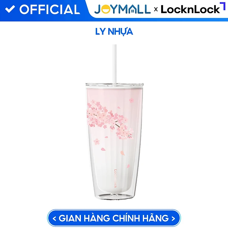 Ly nhựa 2 lớp Lock&Lock màu trắng anh đào HAP522WHT 750ml - Hàng chính hãng, có ống hút, có nắp đậy - JoyMall