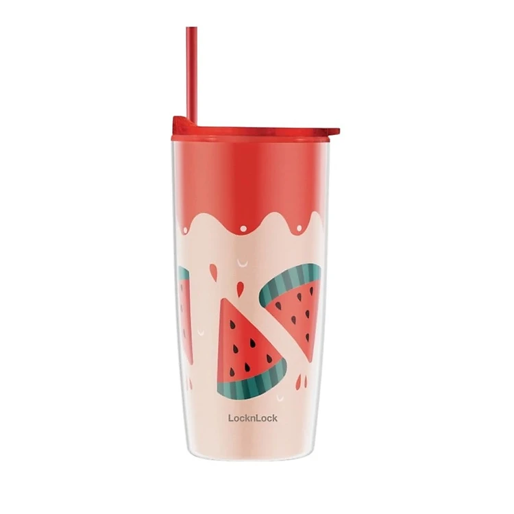 Ly Nhựa 2 Lớp LocknLock Kèm Ống Hút Double Wall Cold Cup HAP524 600ml, Hàng Chính Hãng - JoyMall