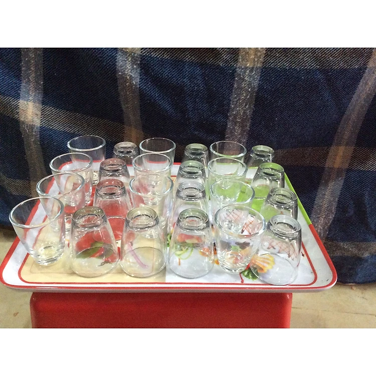 ly nhỏ làm bằng thủy tinh kiềm trong suốt