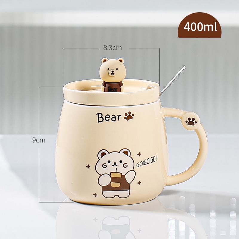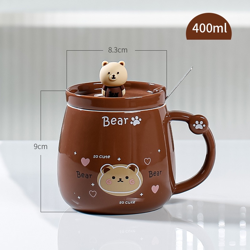 Ly sứ Bear Nâu nắp sứ muỗng inox 400ml