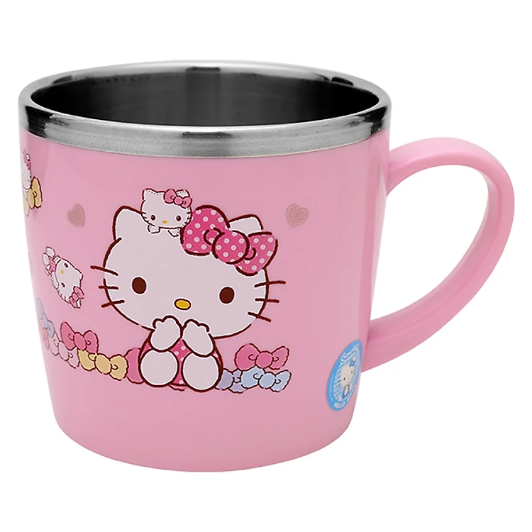 Ly Uống Nước Cho Bé Có Tay Cầm Bằng Thép Không Gỉ Hello Kitty LKT427 (11 x 8 x 7.5 cm) - Hồng