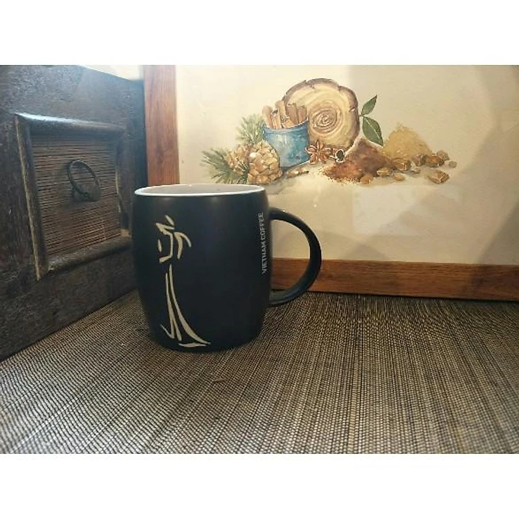 Ly Uống Nước Cô Gái Áo Dài Gốm Mát Đen