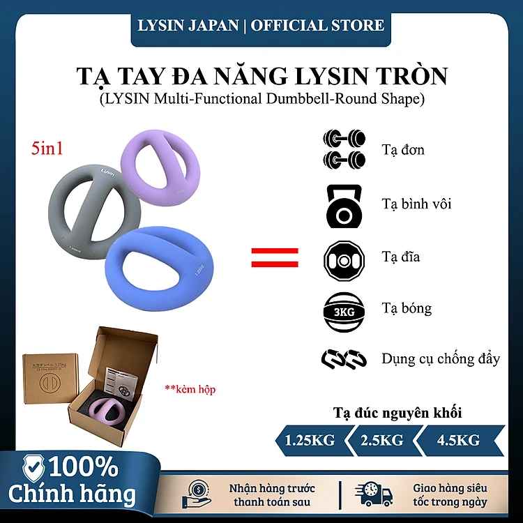 Lysin - quả tạ nữ, tạ ấm, tạ bình vôi khối lượng 1.25kg 2.5kg 4.5kg bằng sắt bọc cao su nhám chống trượt thiết kế hình tròn có tay cầm giữa gọn nhẹ kiểu dáng độc đáo rèn luyện sức khỏe, tập luyện đẹp dáng tạ tay tập cơ tay.