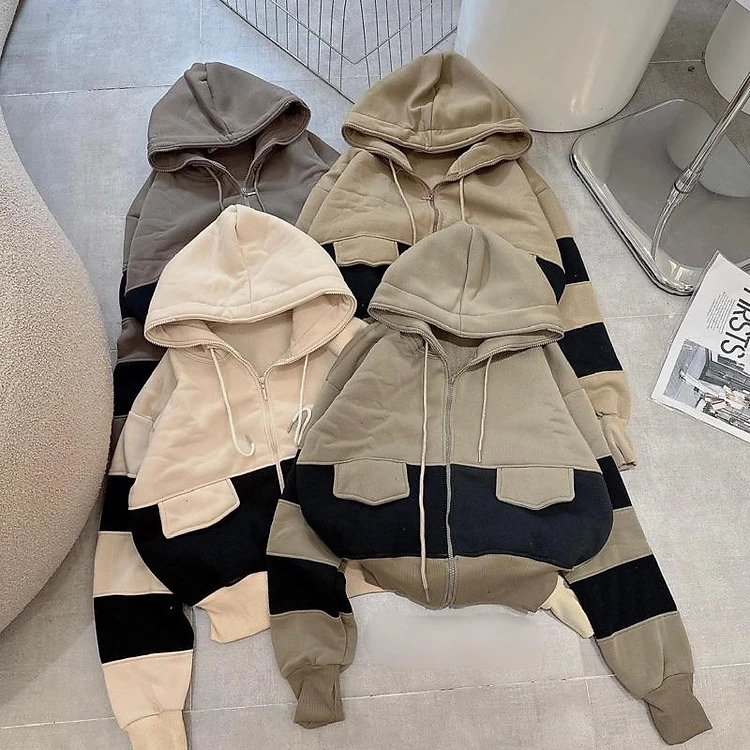 [LZ] Áo khoác Kéo Cao Nỉ Dày Chống Nắng Dáng Lửng Phối Màu Tay Xỏ Ngón 4 Túi Nón To hàng đẹp xitin-A2165