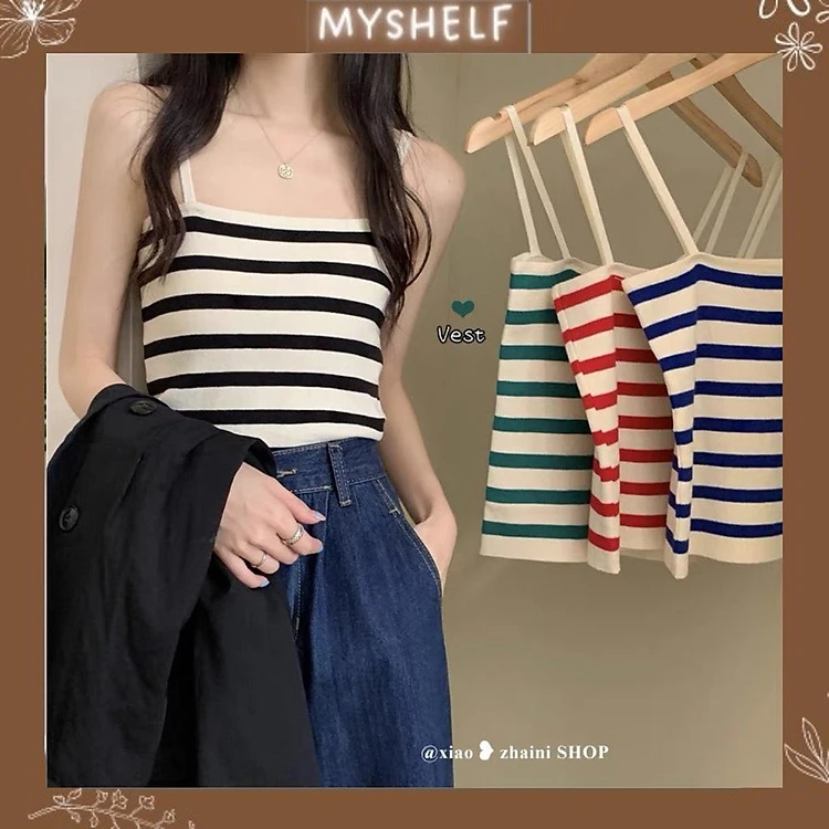 M99. Áo 2 dây kẻ ngang, áo hai dây nữ thun tăm kẻ ngang cá tính hot trend 2023 (có sẵn - miễn ship)
