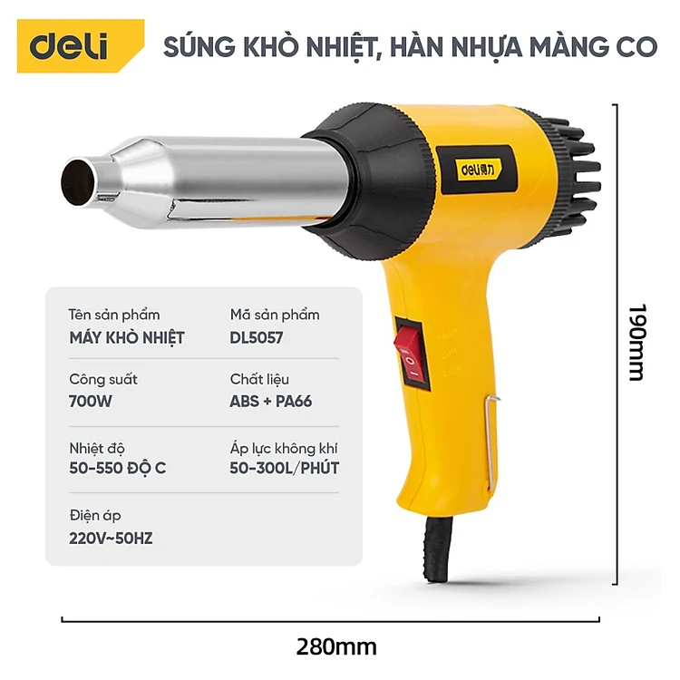 Máy khò nhiệt Deli Súng Khò Hàn Nhựa Màng Co Thổi Hơi Nóng Cao Cấp Lên Tới 480 Độ