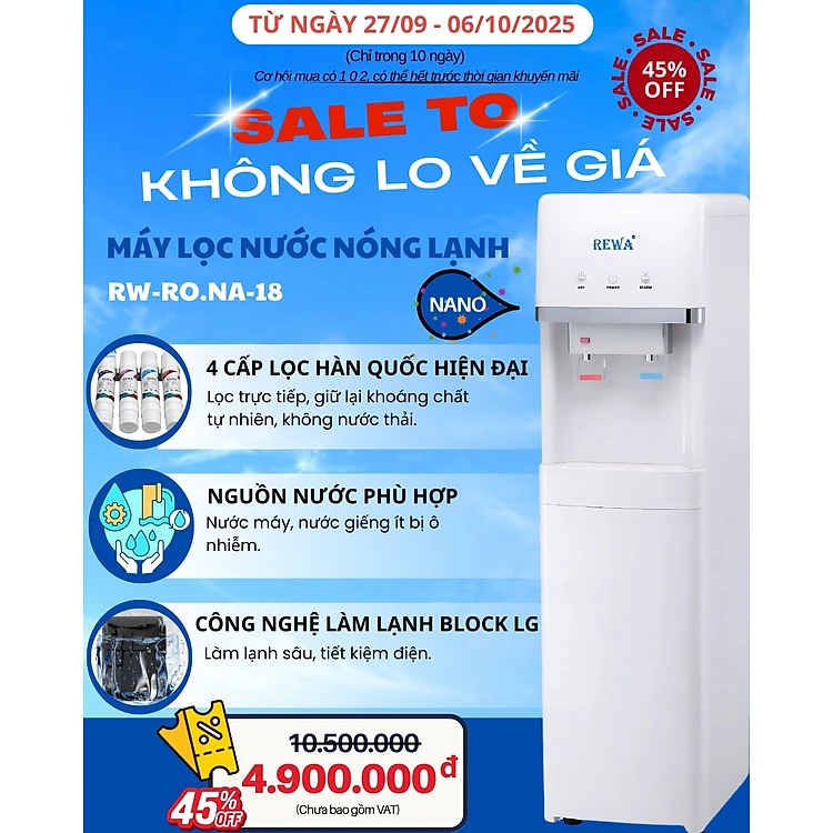 Máy Lọc Nước Nóng Lạnh Rewa RW-RO.NA-18 - Hàng Chính Hãng - Bảo Hành 12 Tháng