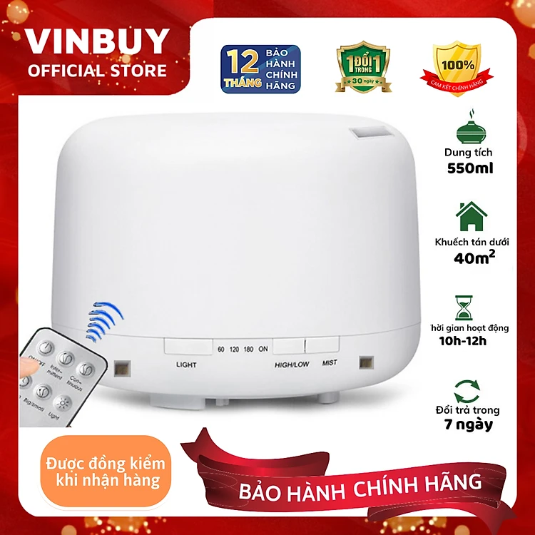 - Dung tích 550ml, hoạt động tối đa 12H, tự động tắt khi cạn nước.