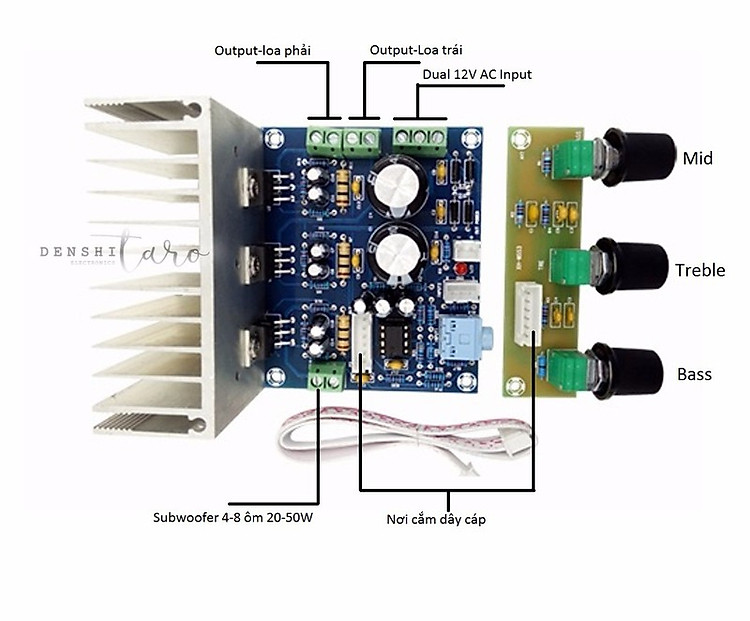 cho ngõ ra 3 kênh với công suất mỗi kênh L-R 20W và công suất kênh Bass 30W.