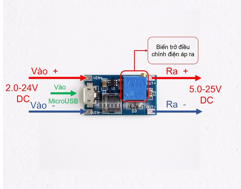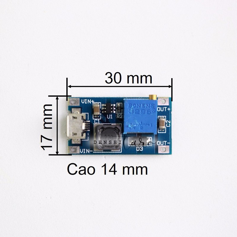 - Mạch nâng áp D00-014 là mạch điện tử có tính năng nâng điện áp từ 2-24V DC lên 5-28V DC với đầu vào có thể sử dụng nguồn MicroUSB rất tiện dụng.