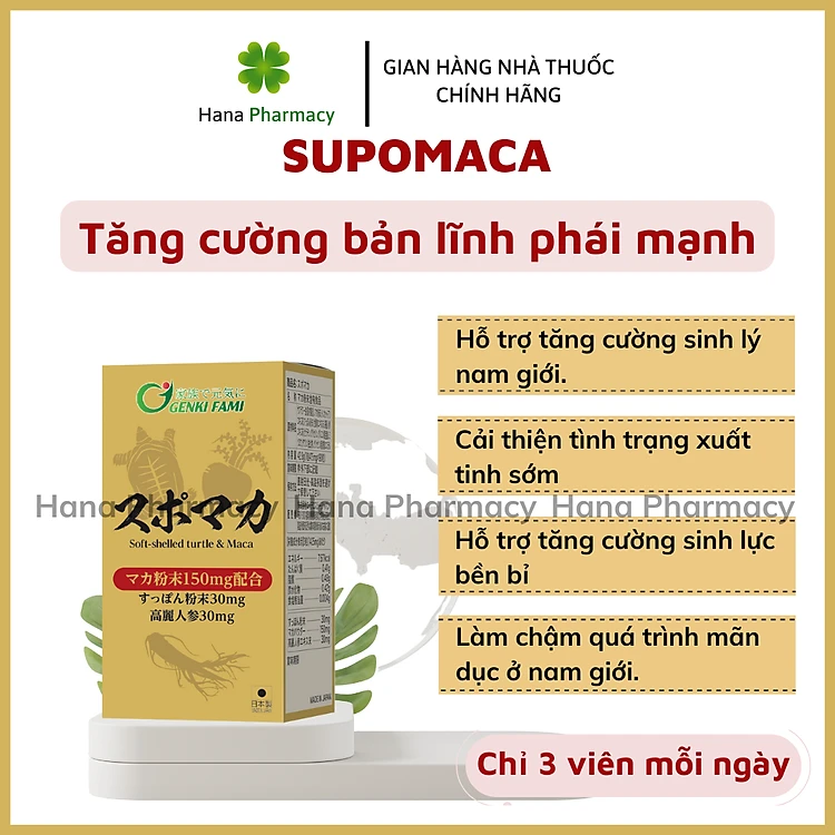 [Nhập khẩu chính hãng] Tăng cường sinh lý nam SUPOMACA - khẳng định phong độ và bản lĩnh phái mạnh với sự kết hợp 3 LOẠI SÂM QUÝ, tinh chất hàu biển, ba ba (Hộp 90 viên/30 ngày)